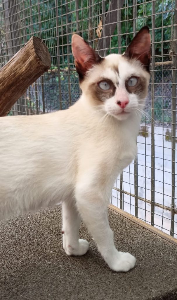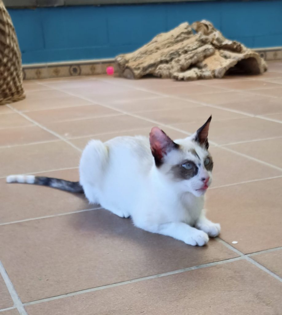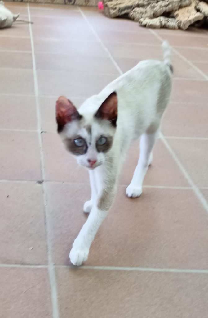 És un gat molt mans i afectuós. La seva adaptació amb els altres ha sigut molt ràpida. És un gat molt maco i esperem trobar un adoptant ben aviat.