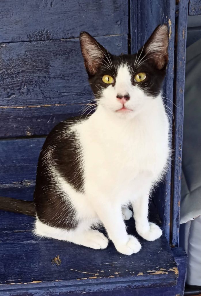 És una mica temorosa, li costa confiar, tot i que un cop ho fa, es deixa acariciar.